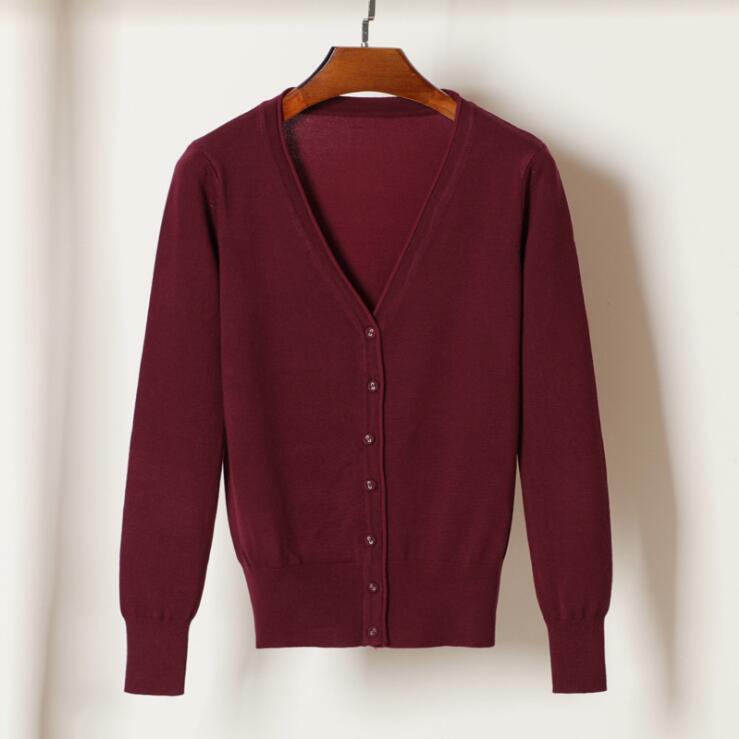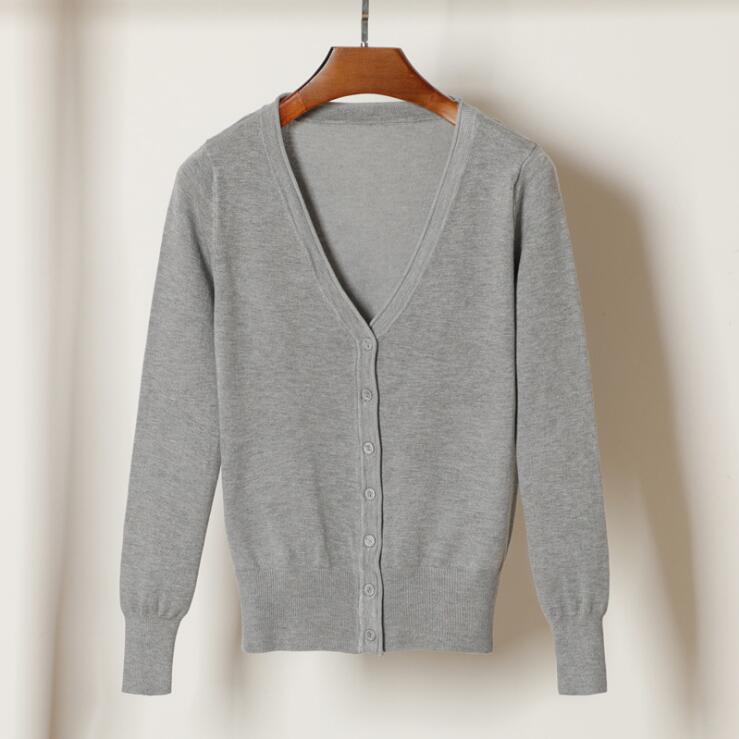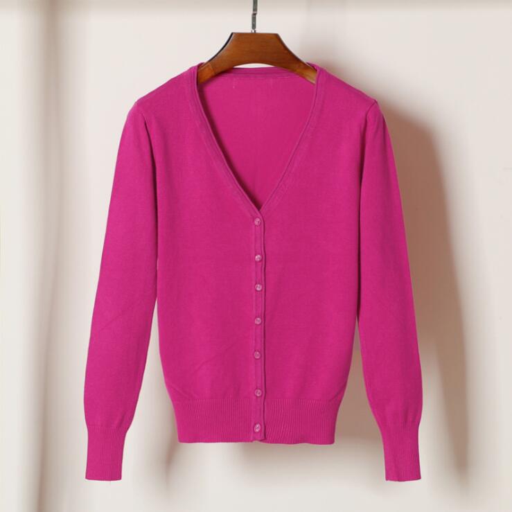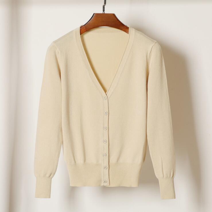 Queechalle 25 Colors knitted cardigans spring autumn cardigan women casual long sleeve tops V neck solid women sweater coat