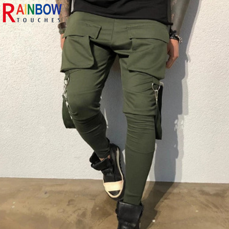 Rainbowtouches Sports Men Stretch Tights Sweat Absorbing And Breathable Fitness Casual Multi Pocket Stitching Cargo Pants Mens