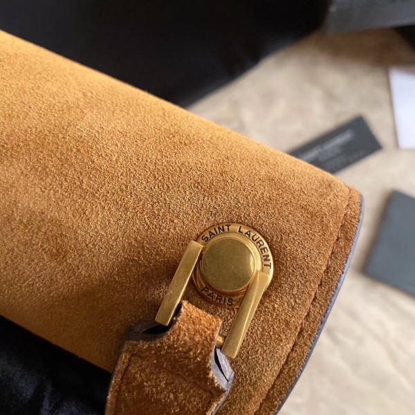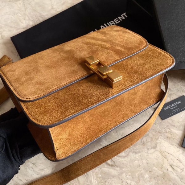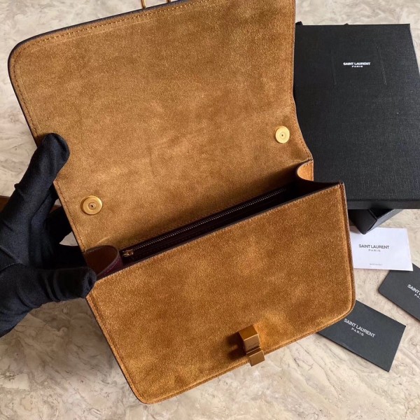 Saint Laurent Carre Satchel Bag In Brown Suede Leather