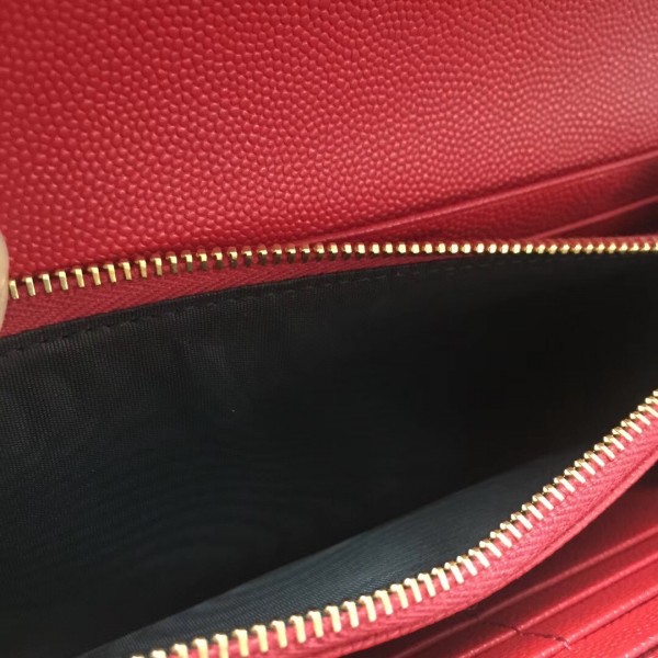 Indulge in this Saint Laurent large monogram wallet wallet to add the Parisian label’s hard-edged opulence to your ensemble. Crafted from grain de poudre embossed leather, this design features multiple card slots and a zipped interior compartment, perfect for securely storing your valuables. The chevron patterned luxurious quilting is punctuated by the iconic ‘YSL’ logo, reflecting the label’s timeless appeal.