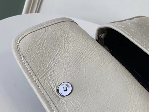 Saint Laurent WOC Niki Chain Wallet In White Crinkled Leather