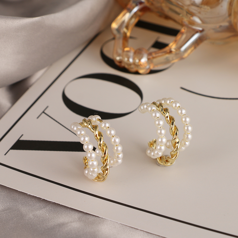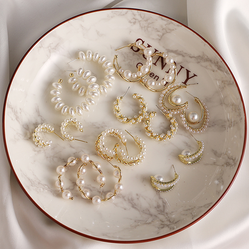 Simple Plain Gold Color Metal Pearl Hoop Earrings Big Circle Hoops Statement Earrings for Women Wedding Gifts