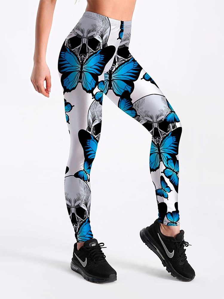 Skull Butterfly Smoke Gym Yoga Legging 3D All Over Print Sexy Casual Streetwear US Size Fitness Elastic Women Girl Clothing