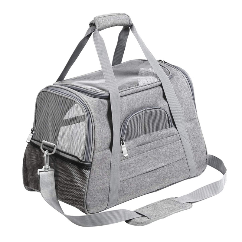 Large-capacity, strong and non-deformable inner lined with fiber rod support to ensure that the bag is not deformed. Fast and convenient travel, wide field of vision and portable. Zipper openings on both sides are convenient for pets to enter and exit, and can be easily folded. The bag is fixed on the trolley case.