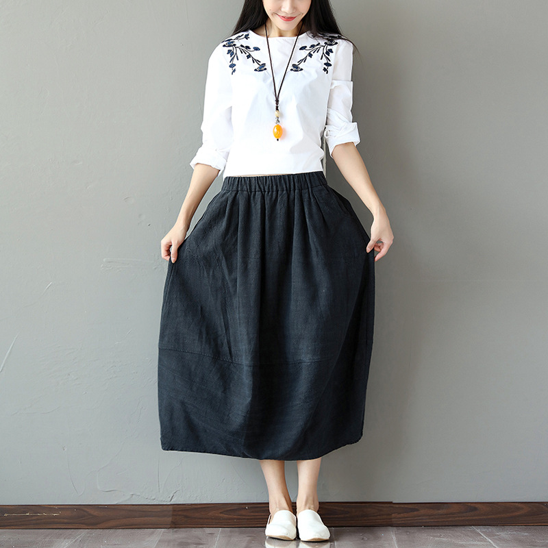 Spring Retro Literary Cotton-linen Skirt Model Half-length Skirt Flax Big-pendulum A-shaped Bud Lantern Skirt