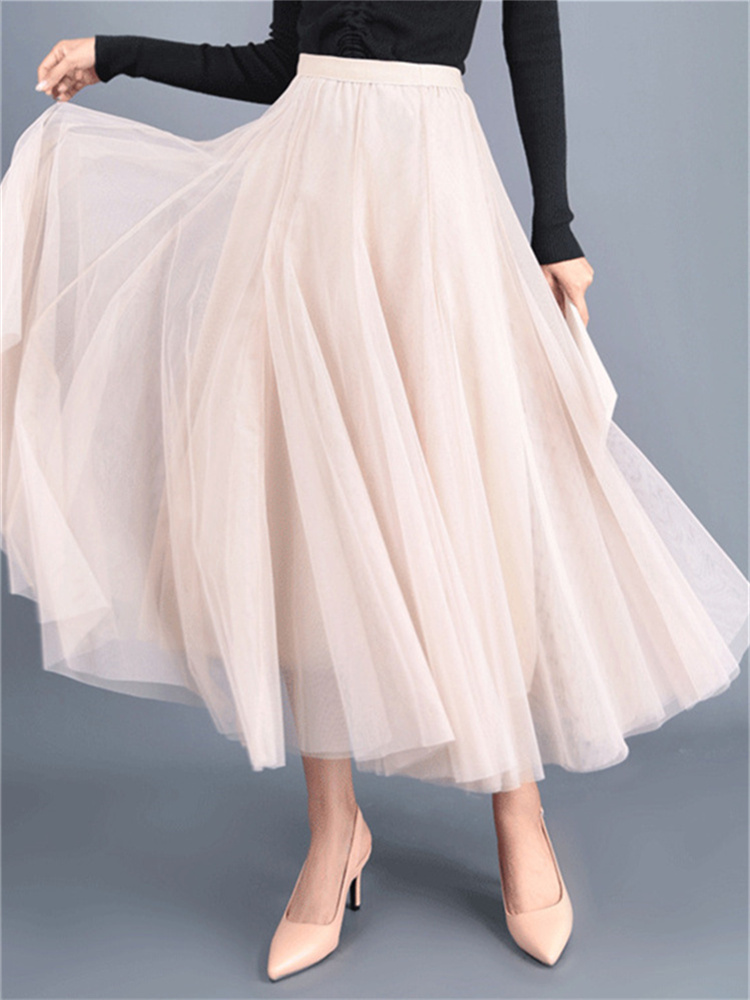 Spring Big Swing Puffy Ankle Long Skirt High Waist Slim Fairy Skirt Mesh Skirt A-line Skirt Harajuku Vintage Y2k Clothes