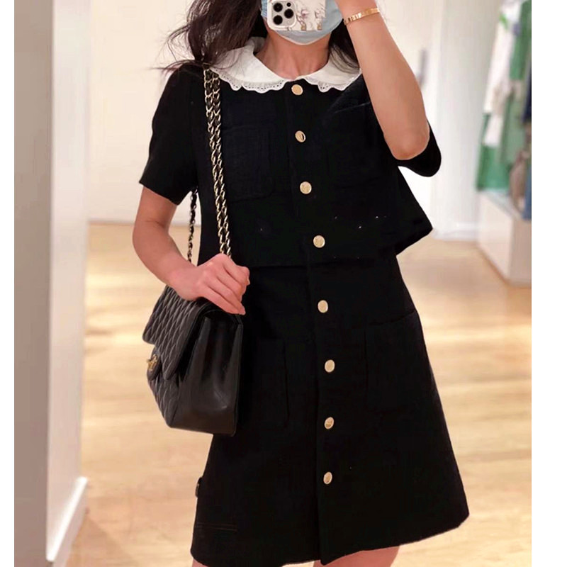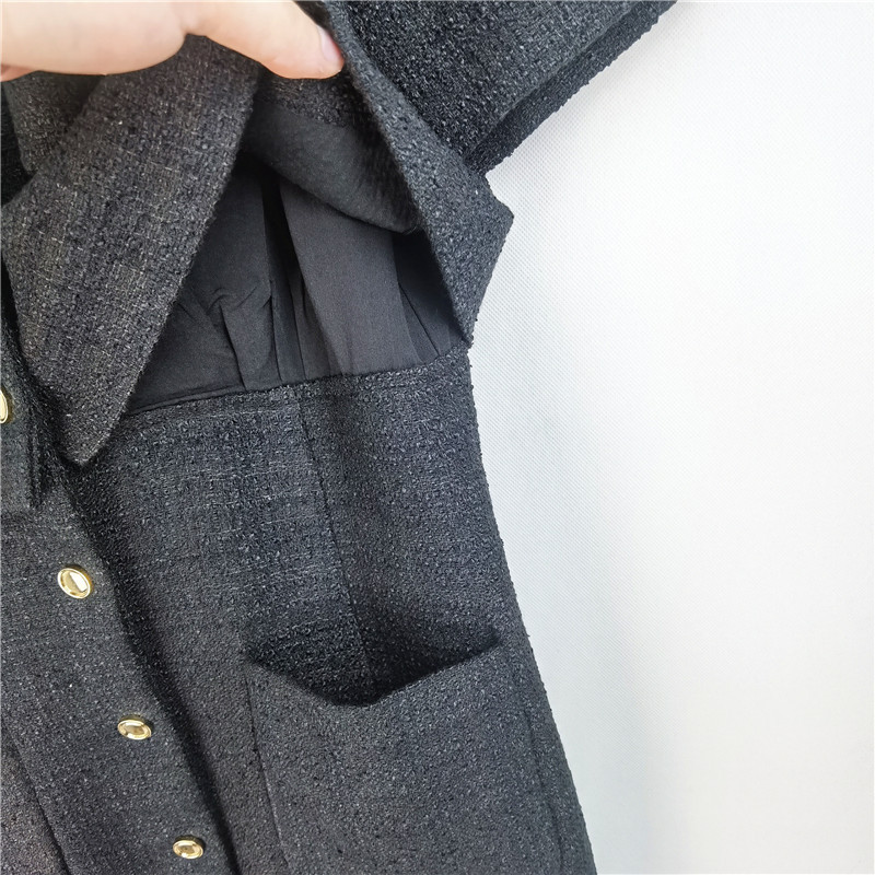 Spring and Autumn Doll Hook Flower Large Lapel Woolen Dress Single Breasted