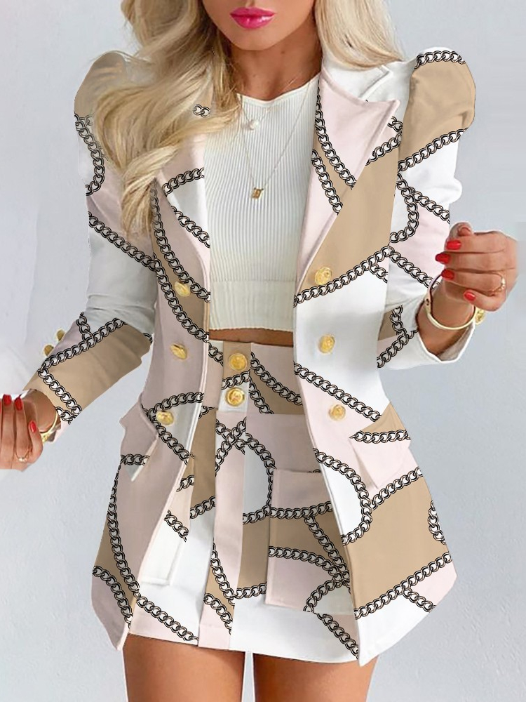 Spring and Autumn Leisure Suit Women's Double-breasted Long Sleeve Skirt Suit 2-piece Office Women Dress Skirt Set