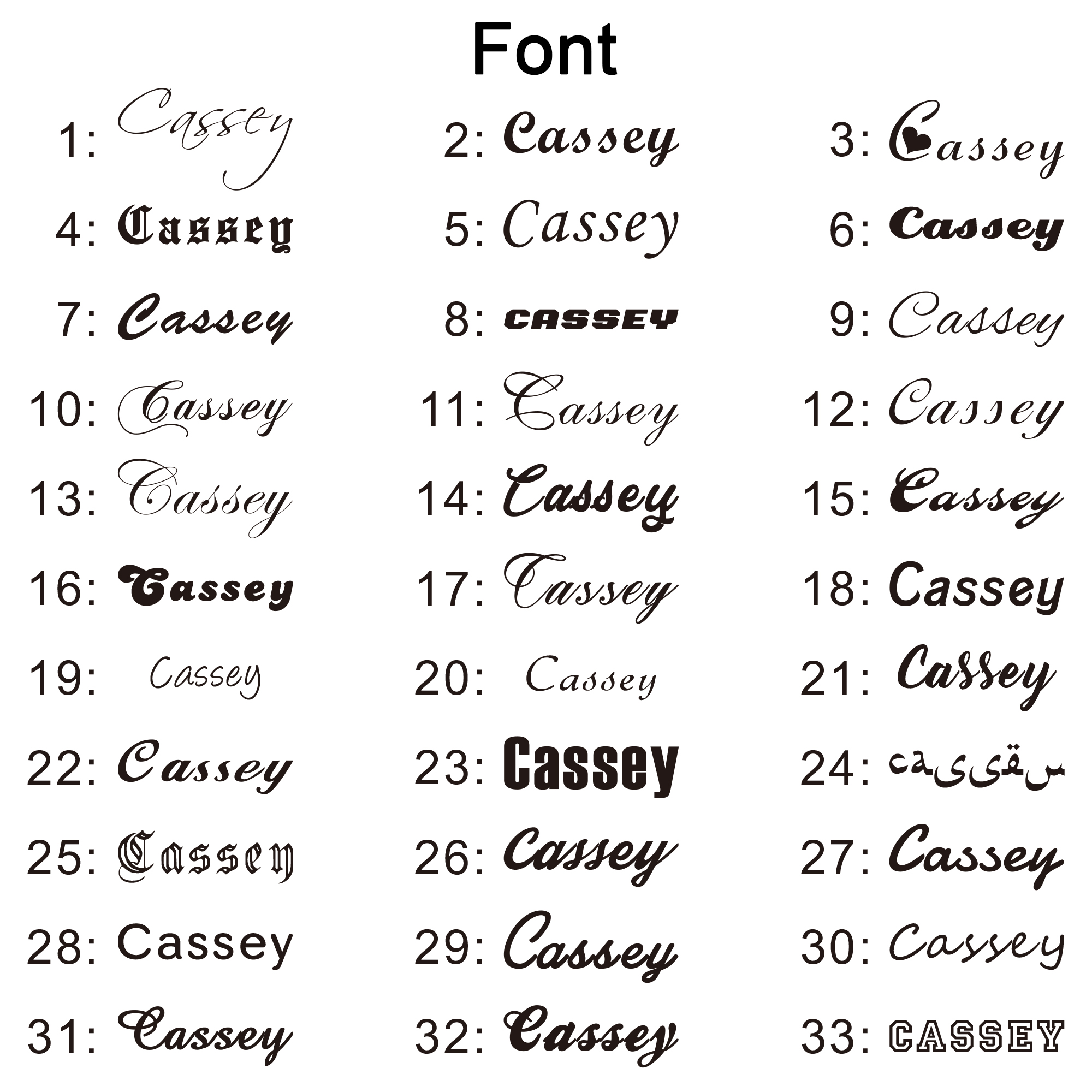 (such as Cassey, font 5)