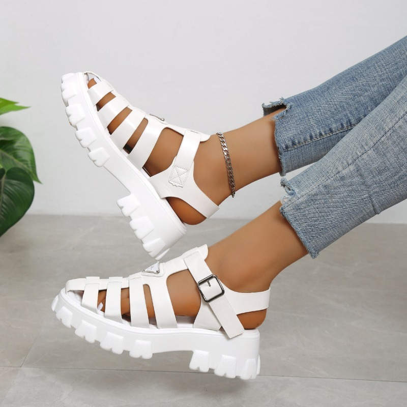 Summer Gladiator Women Narrow Band Cross-tied Platform Square Heel Peep Toe Rome Design Sexy Mature Shoes Ladies Female