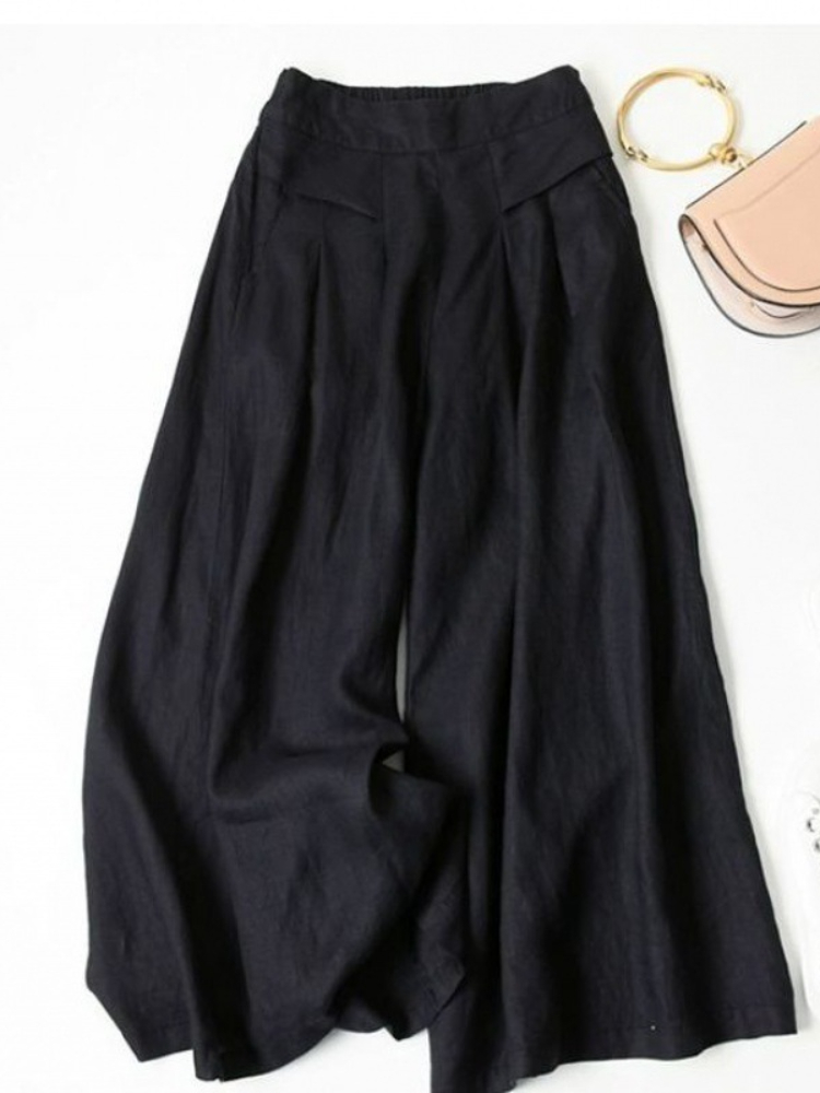 Summer Pants for Women Cotton Linen Large Size Wide Leg Pants Femme Arts Style Elastic Waist Solid Casual Loose Pantalon