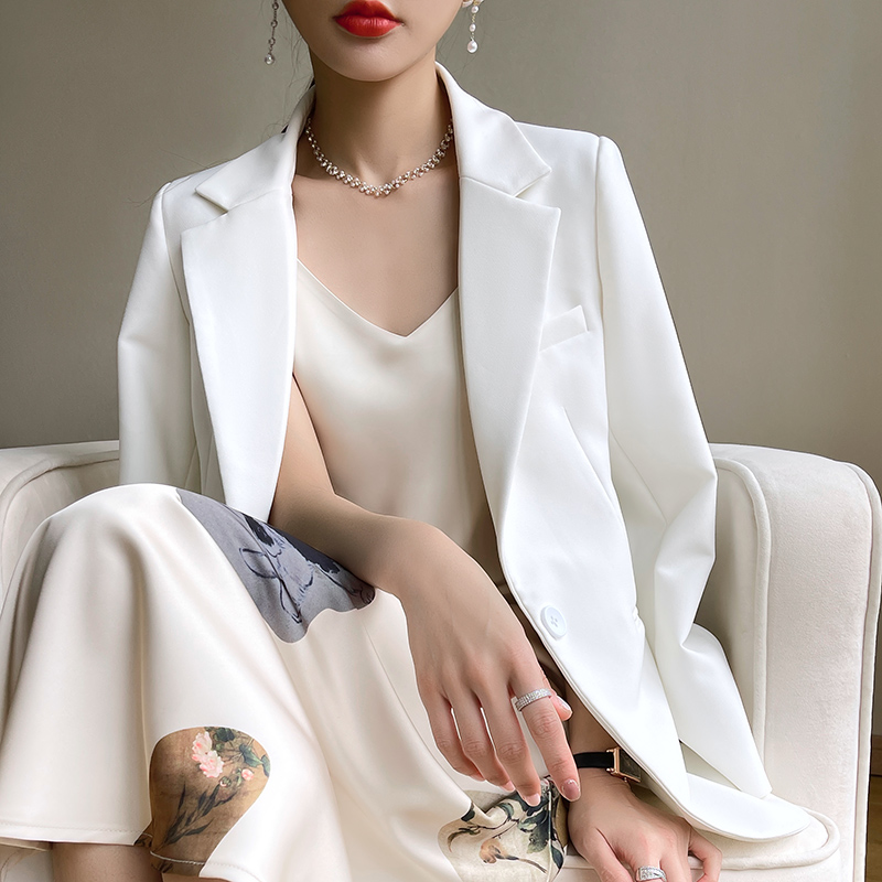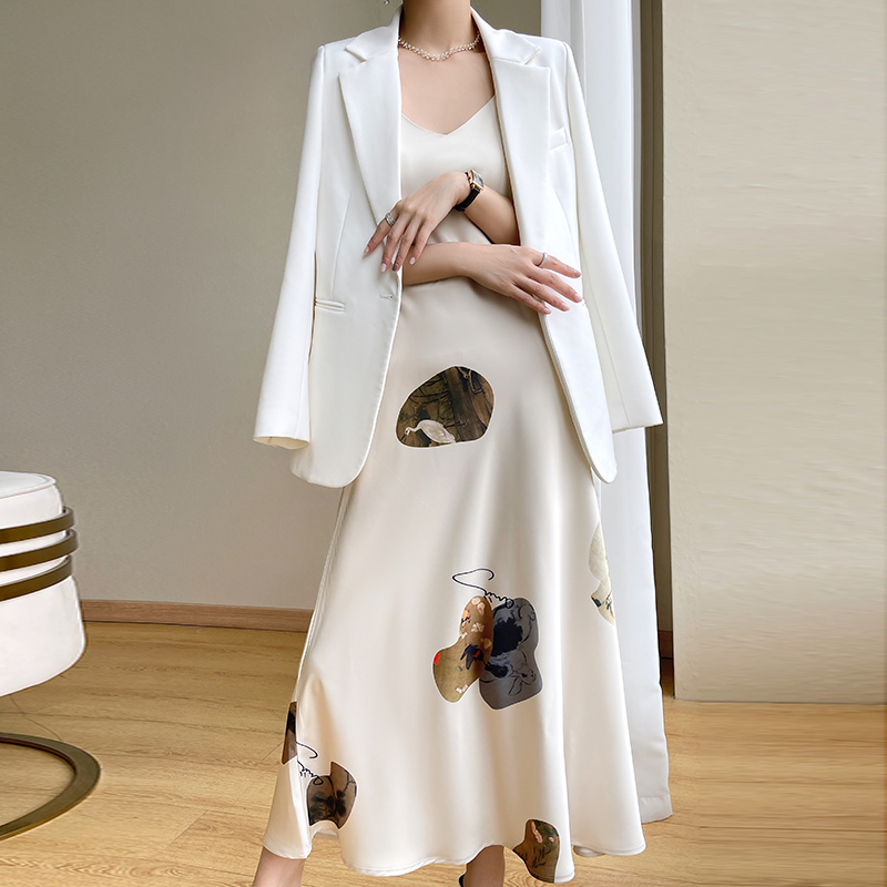 Summer Silk Suspender Dress Design Sense Female Mulberry Silk Satin V-Neck Printing Slim Temperament Midi Skirt
