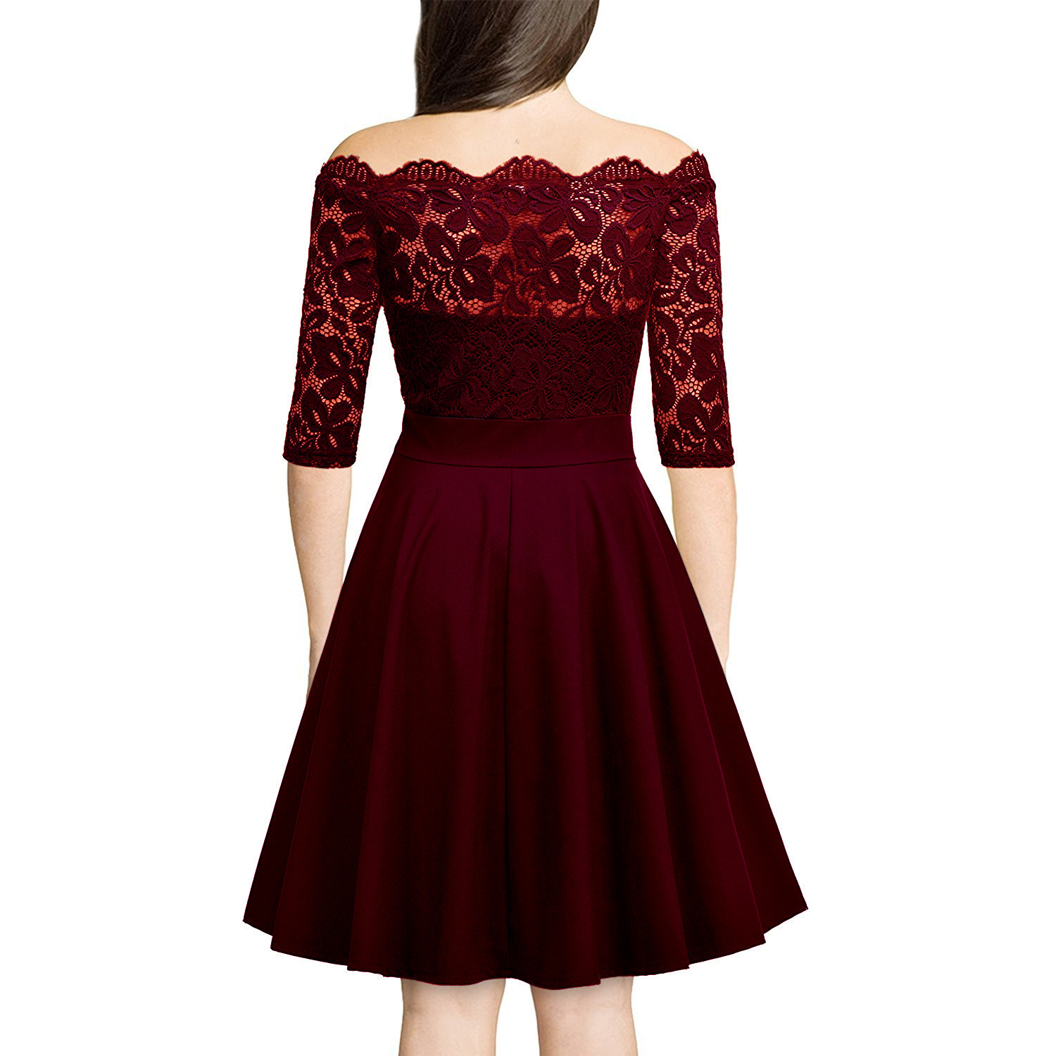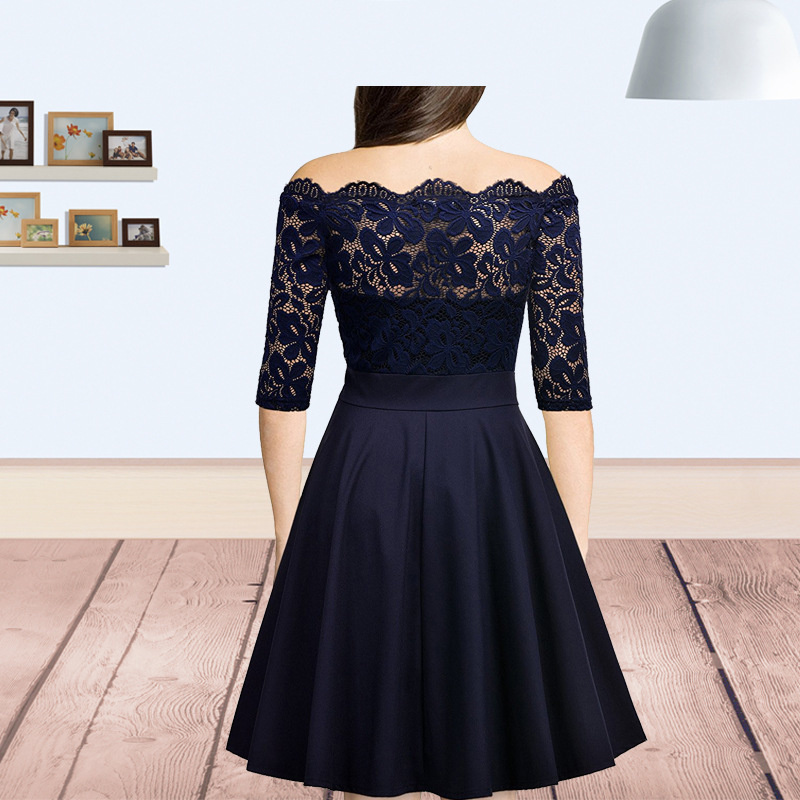 Summer Solid Color One Word Collar Dress Women Clothing Elegant Strapless Pleated Mid Calf Lace Dress Daily Evening Dresses