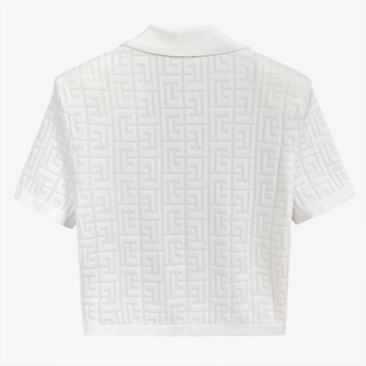 Summer White Geimetric Pattern Short Sleelve Notched Knittied Strechy Casual Slim Blouse Women Tops