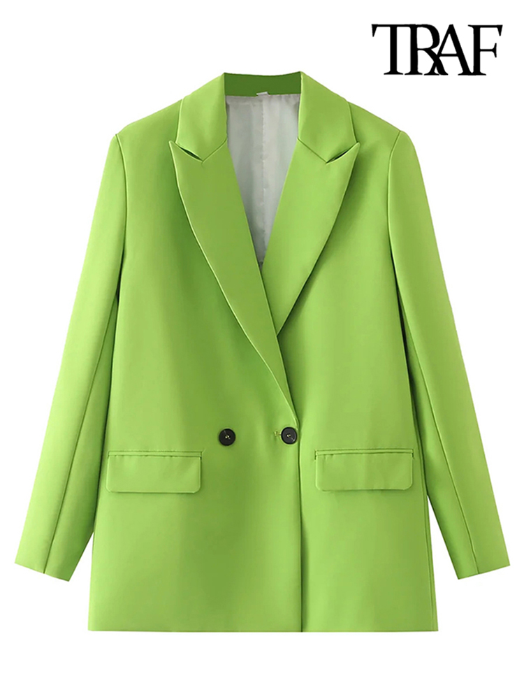 TRAF Women Chic Office Lady Double Breasted Blazer Vintage Coat Notched Collar Long Sleeve Ladies Outerwear Stylish Tops