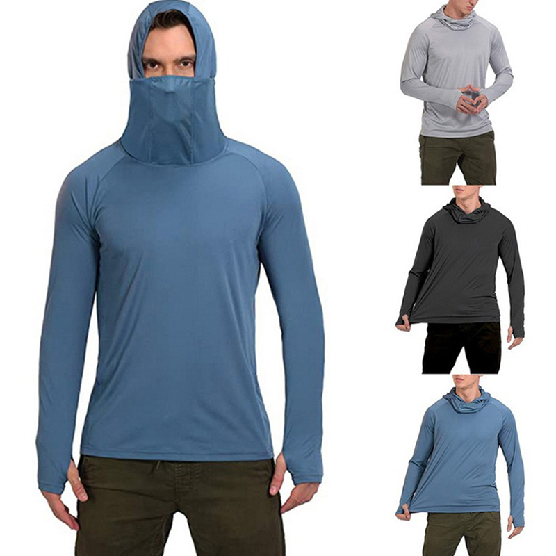 Thin Breathable Outdoor UPF 50+ Men's Long Sleeve Sun Protection T-shirt Outdoor Fishing Hoodie Ice Silk Sunscreen Clothes