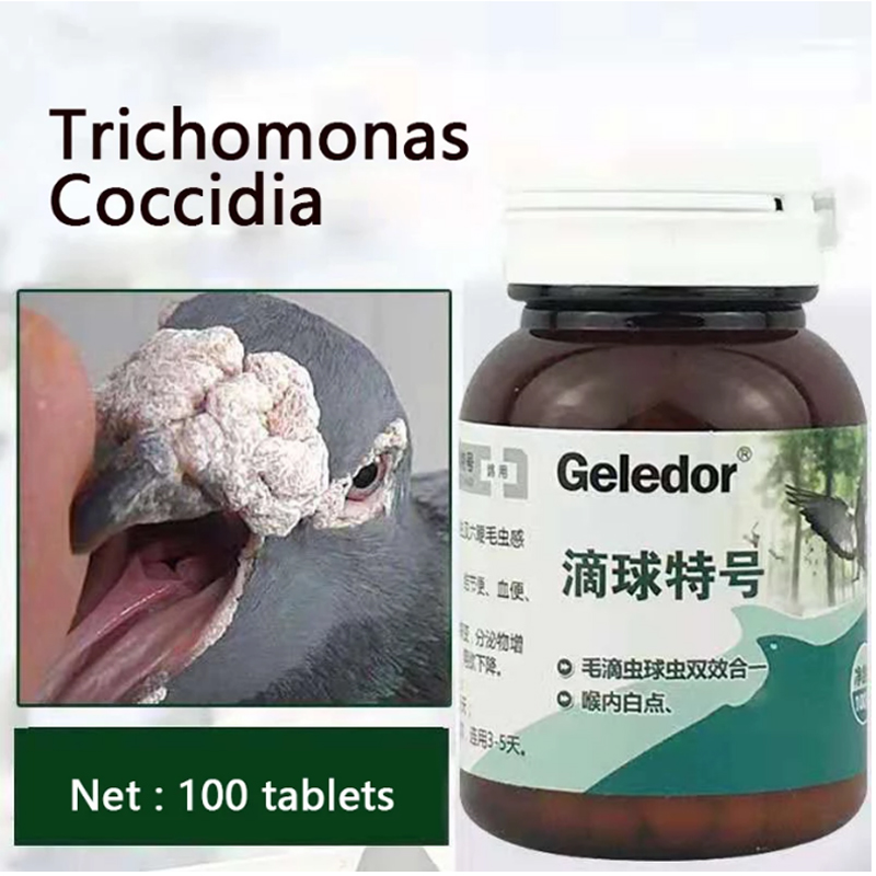 It is effective for trichomonas pigeons, coccidia, feather loosening, digestive disorders, coccidia infection, nodular stool, diarrhea and weight loss