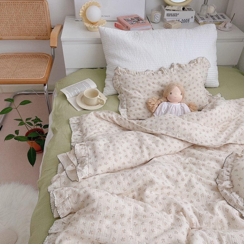 Korean Vintage Floral Printed Ruffled Cotton Baby Duvet Cover Kids Children Infant Cot Crib Duvet Covers Quilt Cover Bedding