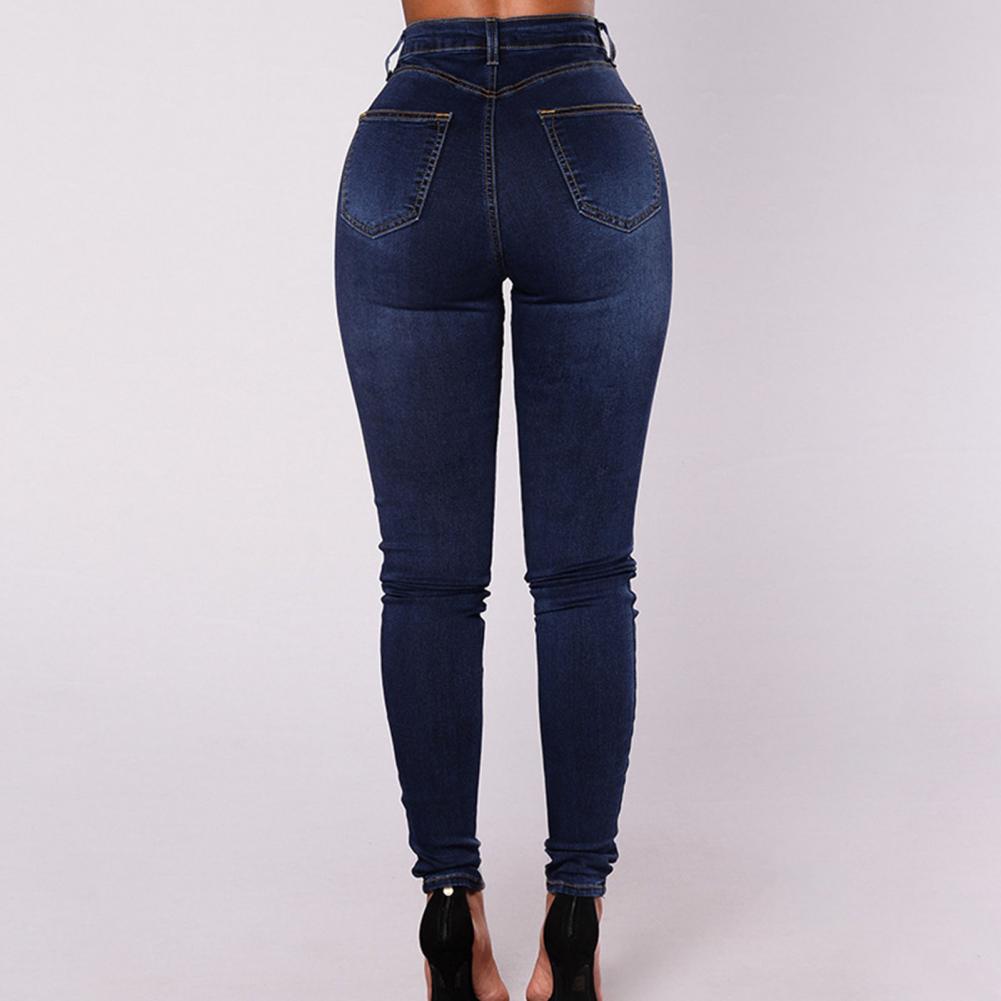 High waist and skinny design for pencil jeans can present the curves of your leg well and make you look slimmer.