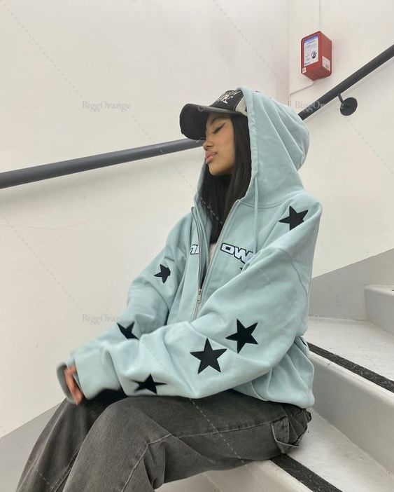 Vintage Sweatshirt Ladies Casual Star Print Design Zip Hoodie Ladies Hip Hop Loose Harajuku Punk Gothic Style Y2k Women's Top