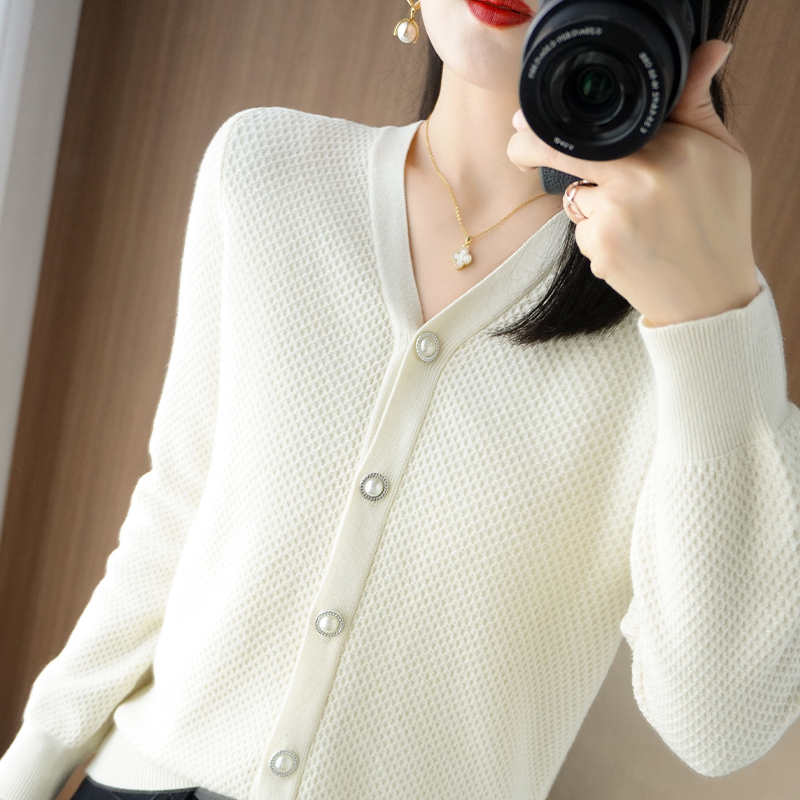 V-neck cashmere cardigan women's sweater in autumn and winter sweater loose thickened solid sweater long sleeved sweater
