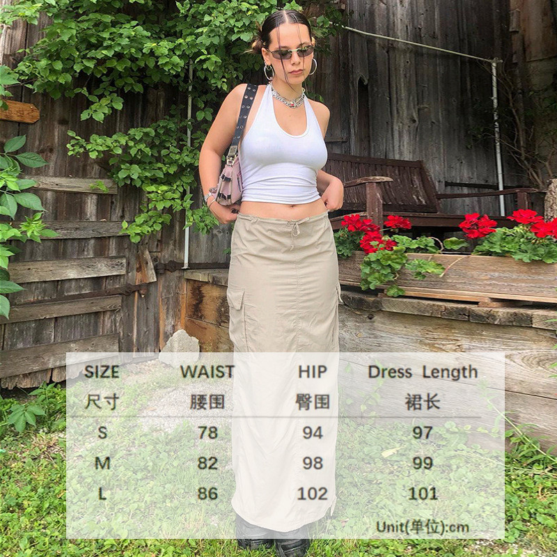 WeiYao Khaki Casual Long Cargo Skirts Women Stitching Vintage Baggy Streetwear Outfits Split Low Waist LooseSize Skirt