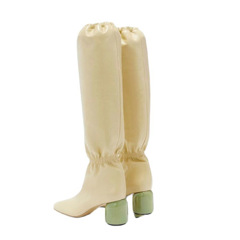 Women Knee Tall Boots Round Heel Banquet Winter Tall Boots High Heels Size 43 Women Shoes