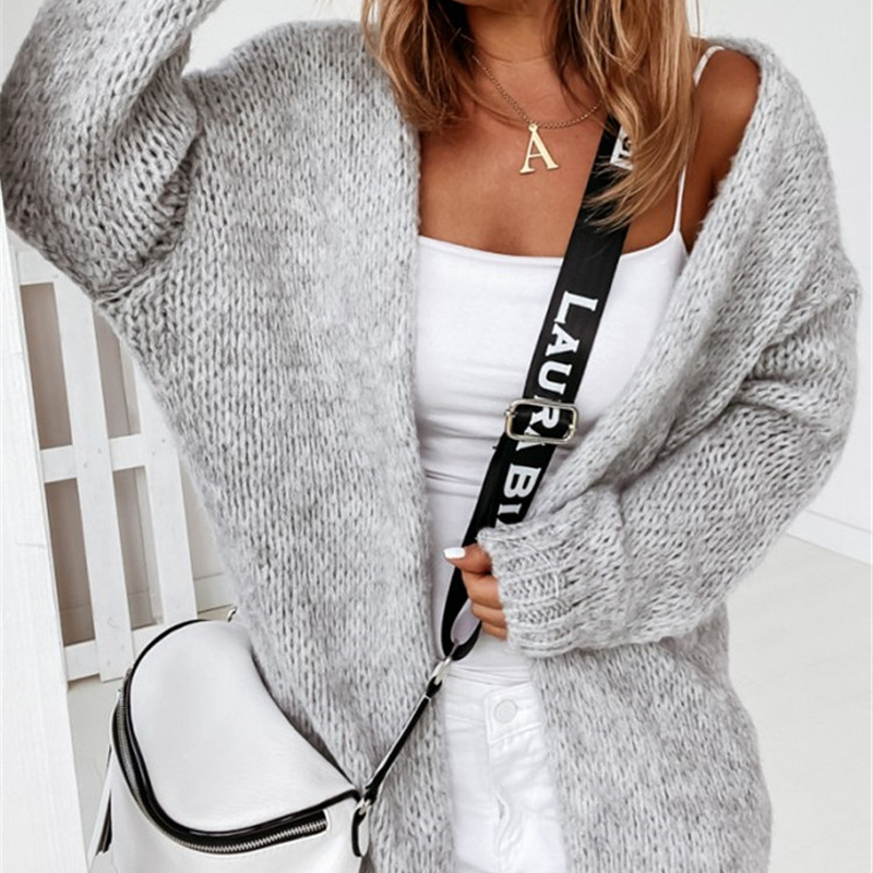 Women Casual Long Sleeve Long Sweaters Tops Autumn Winter Loose Cardigan Outwear Elegant Solid Knitted Sweater