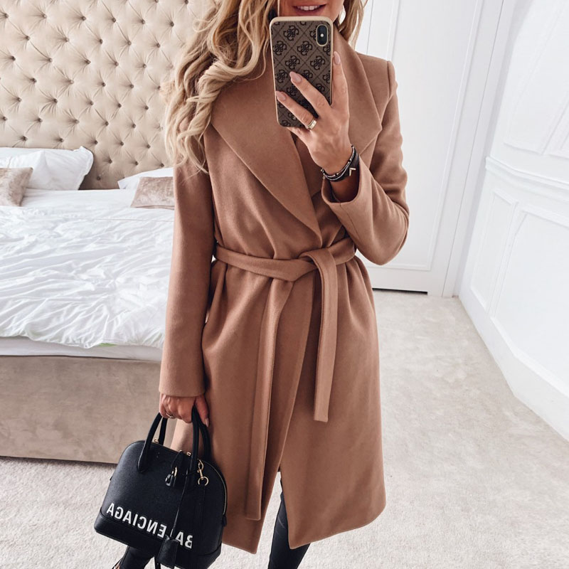 Feature : Women Turn-down Collar Button Woolen Coat