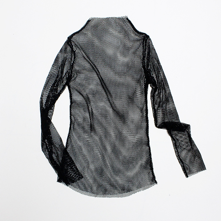 Women Fishnet Mesh See-through Black shirts Female Harajuku Sexy Long Sleeve Tee Tops