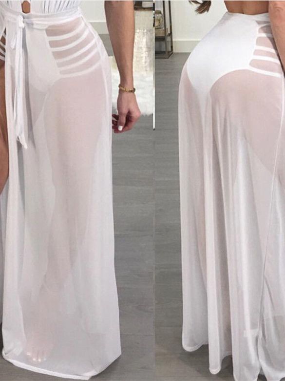 Model Number : Women High Waist Mesh Skirts Empire See Through Sheer Side Split Skirt