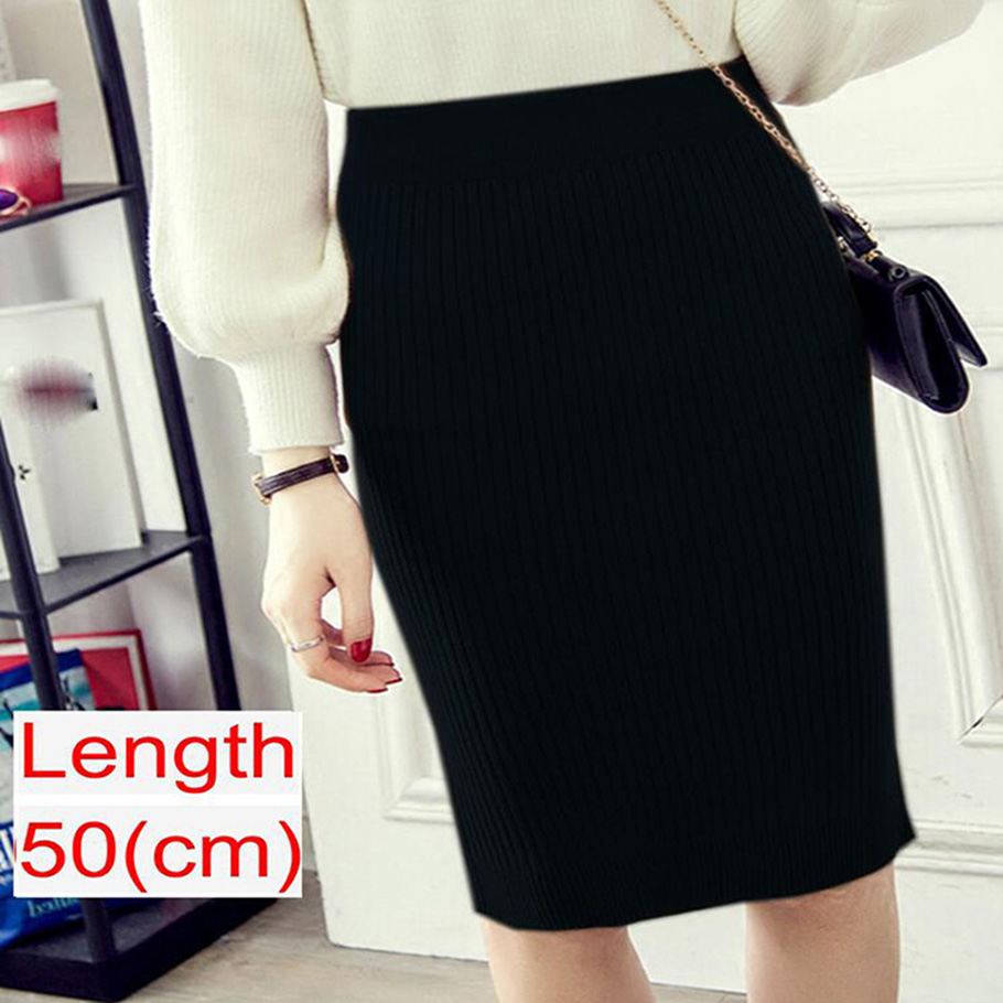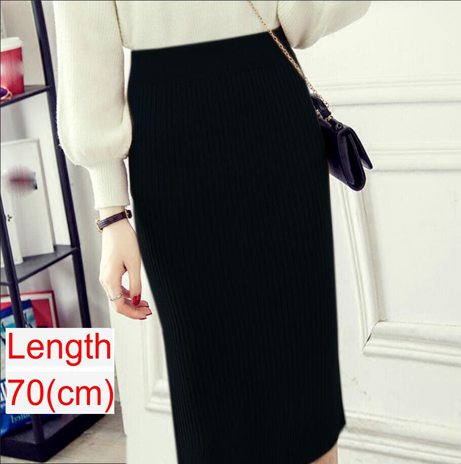 Women Office Skirt Spring autumn Sexy Warm Knitted Black Pencil Skirts Ladies High Waist Elegant Long Skir Party Club Skirt