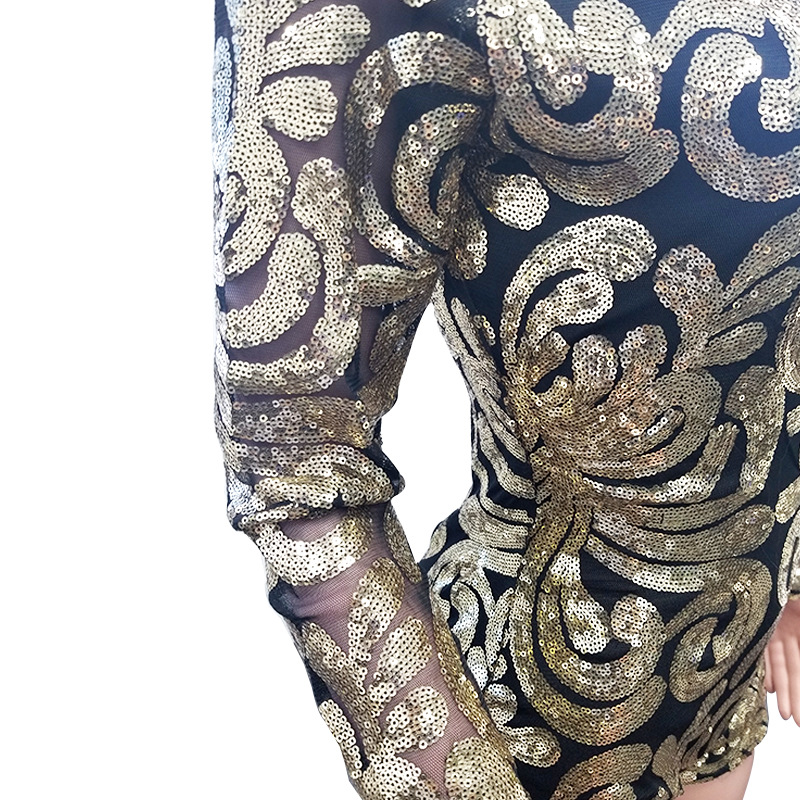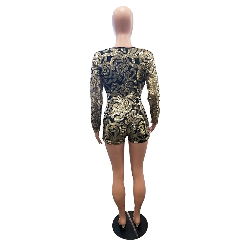 Women Sexy Nightclub Playsuit Bodycon Jumpsuit Deep V Neck Long Sleeve Rompers Sequins Bodysuit Women Party Jumpsuit