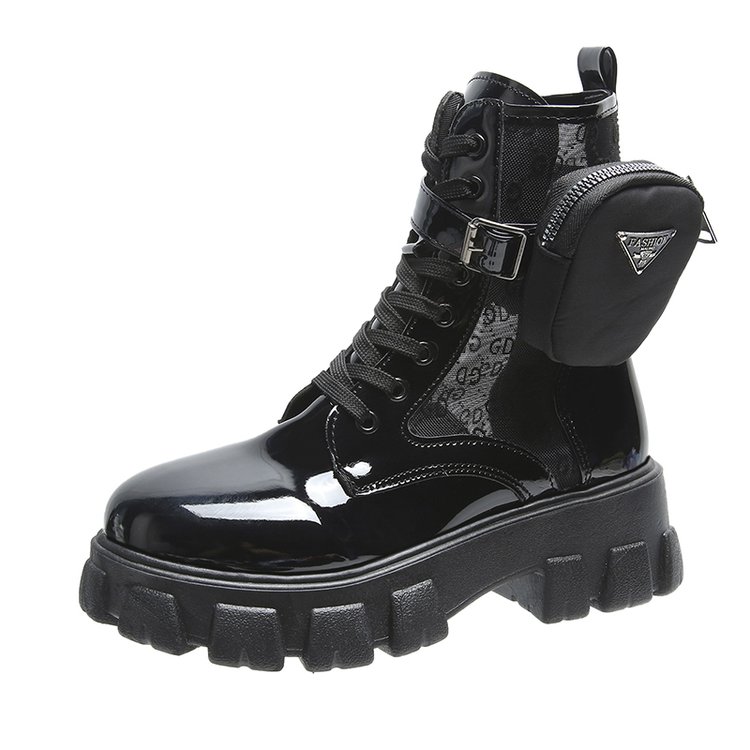 Women Thick-Soled Leather Boots Casual Women Boots Women Lace-Up High Boots Nylon pouch heels flats booties