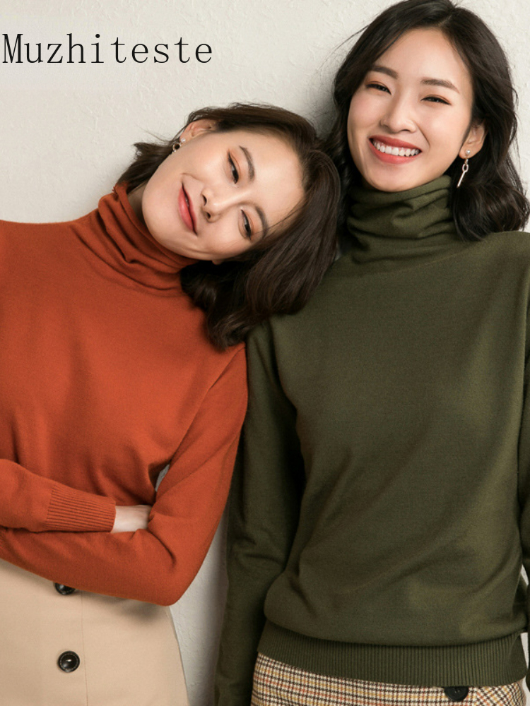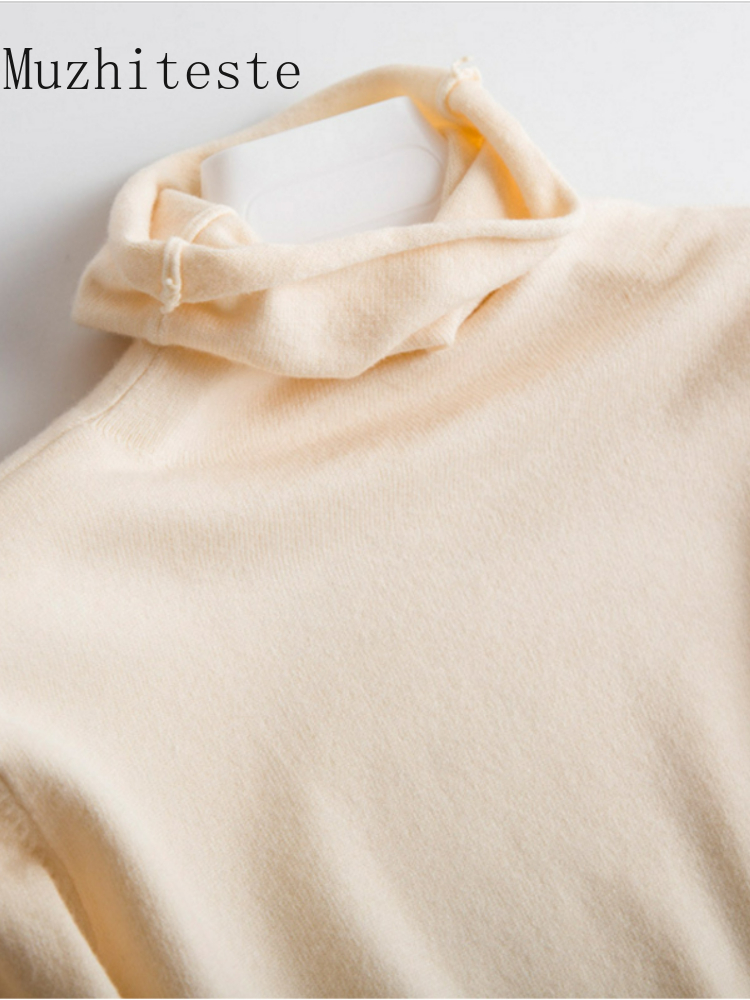 Women's Turtleneck Knitted Sweaters Long Sleeve Basic Pullover Jumper Autumn Winter Beige Knit Turtlenecks for Sweater Women