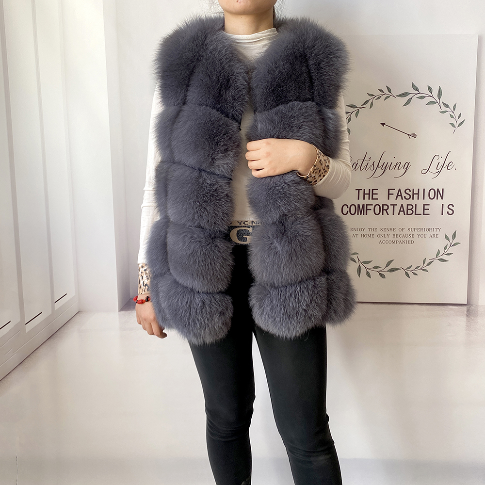 Women's Winter Real Fur Coat High Natural Fox Fur Vest Luxurious Warm Sleeveless Dark buckle jacket