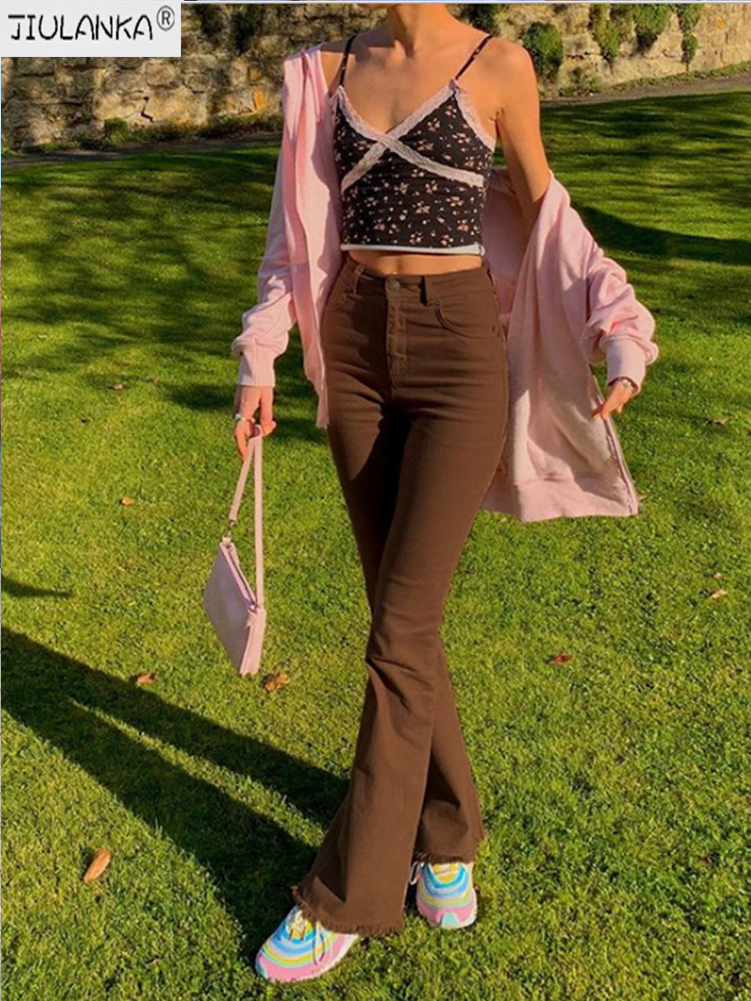 Women's jeans woman high waist brown Pants Jeans Women's pants Jean women clothing undefined streetwear Woman trousers e girl
