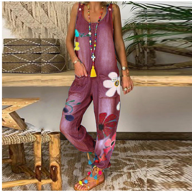 YICIYA Women's Loose Sleeveless Denim Jumpsuit Suspender Denim Collar Wide Bead Jumpsuit Blue Pocket Jeans Jean Femme Pants