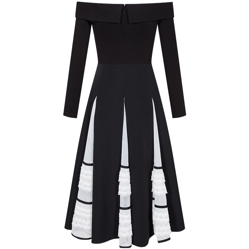 YIGELILA Spring Arrivals Black Dress Slash-neck Long Sleeves Elegant A-line Dress Dinner Party Dress Mid-calf 65241