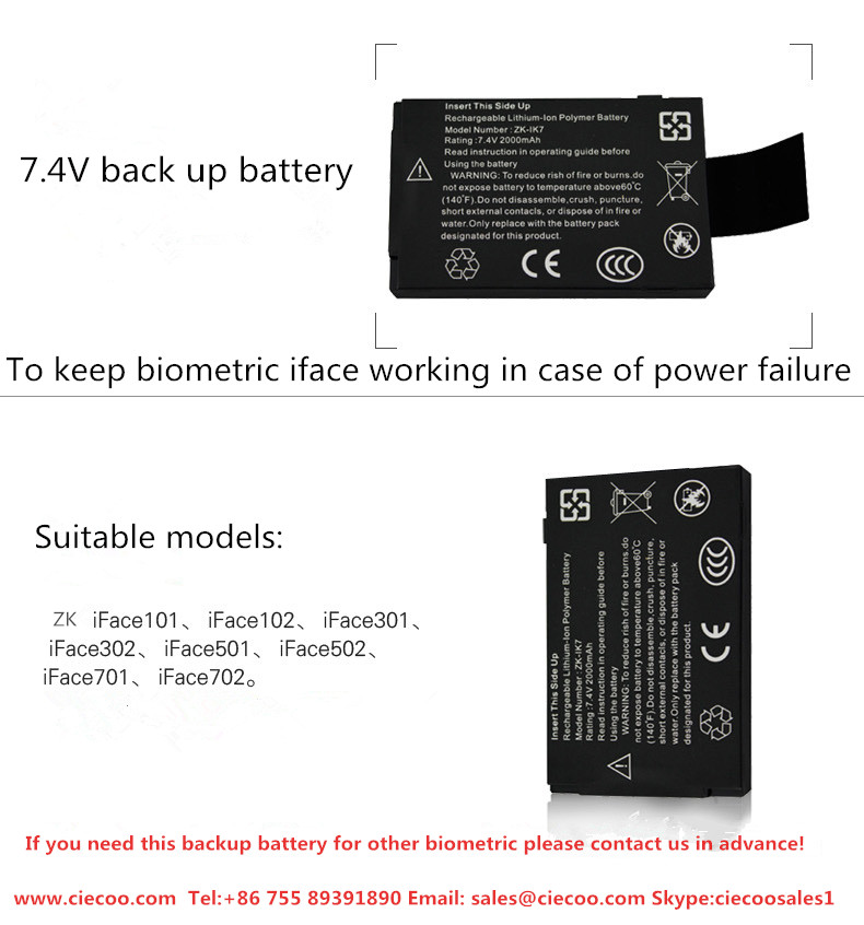 ZK Iface series Battery 2000mAH backup battery Suitable for iface302 iface 702 iface303 iface800 iface402 iface202