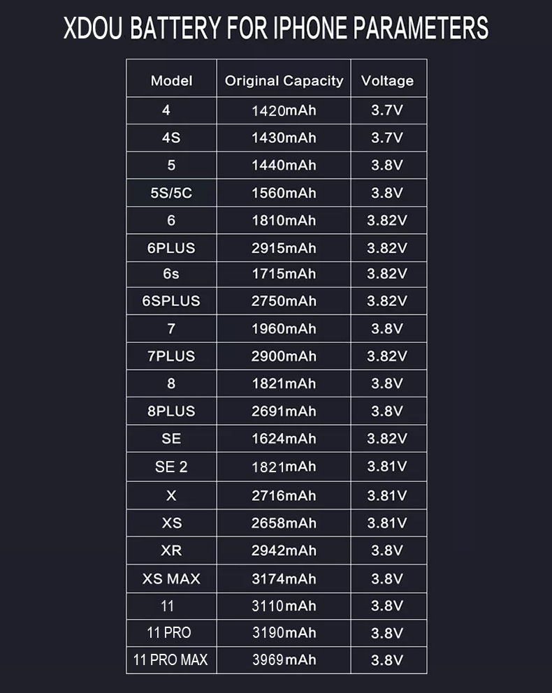 Zero-cycle High- Battery For iPhone 5 6 6S 5S SE 7 8 Plus X Xs Max 11 Pro Mobile Phone With Free Tools Sticker