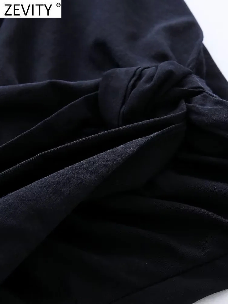 Zevity Women Solid Color Knotted Pleat Sarong Midi Skirt Faldas Mujer Lady Chic Back Zipper Black Slim Vestidos QUN1928