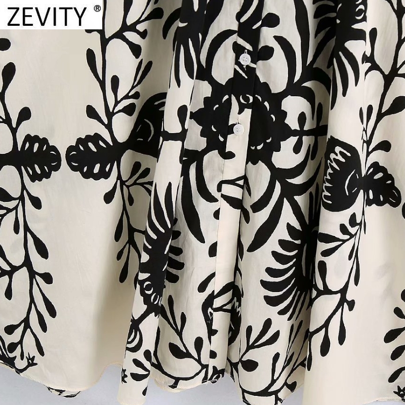 Zevity Women Vintage Black Totem Print Bow Sashes Shirt Dress Female Chic Three Quarter Sleeve Casual Slim Midi Vestidos DS8640
