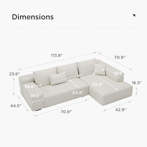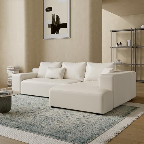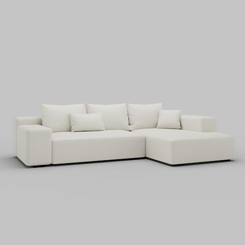 Loved this couch! I was exploring Arhaus and West Elm sofa sectionals for months and couldn't commit to a $8k+ couch that would take months to come in so I took a gamble on this one and couldn't be happier! It looks designer, is built with quality, and is easy to clean! I wasn't thrilled about getting a white couch but it cleans easily with Shout stain remover spray.The only negative is it's a little stiff for my liking. My guests are satisfied with the comfort, I just wish the seat cushions were as fluffy as the back cushions, but that's just my preference! I've still fallen asleep on it several times either way.