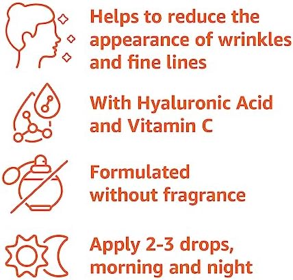 Amazon Basics Brightening Vitamin C Serum is formulated with Rosemary, Grapefruit, and Cucumber extracts. Formulated without fragrance, this daily use serum provides beneficial Vitamin C and Hyaluronic Acid to brighten and hydrate for even tone skin.