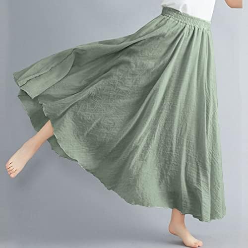 ASHER FASHION Women's Bohemian Style Elastic Waist Band Cotton Linen Long Maxi Skirt Dress