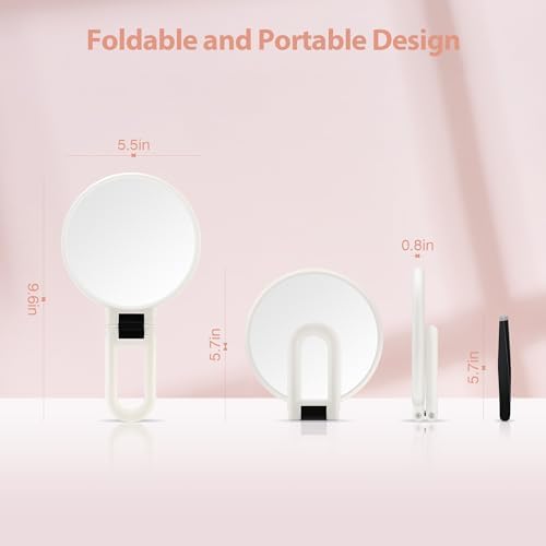 B Beauty Planet Hand Mirror, 30X Magnifying Mirror on Stand, Double Sided Magnifying Mirror with 30X/1X Magnification, 360°Adjustable Handle, Portable Travel Makeup Mirror for Eyebrow Plucking White