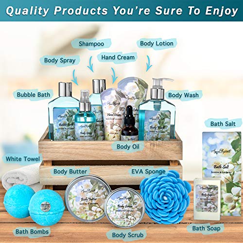 Bath Spa Gift Sets - Luxury Basket With Jasmine & Lavender - Spa Kit Includes Wash, Bubble Bath, Lotion, Bath Salts, Body Scrub, Body Spray, Shower Puff, Bathbombs, Soap and Towel