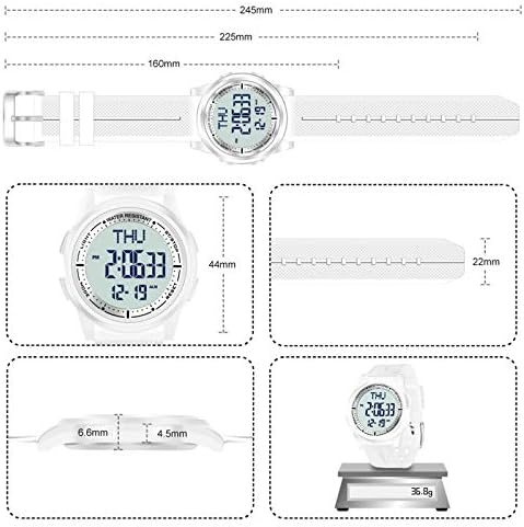 Brand, Seller, or Collection Name Beeasy Model number AW02 Part Number AW02 Model Year 2020 Item Shape Round Dial window material type Acrylic Display Type Digital Clasp Tang Buckle Case material Acrylonitrile Butadiene Styrene Case diameter 44 millimeters Case Thickness 6.6 millimeters Band Material Resin Band size Mens Standard Band width 22 millimeters Band Color White Dial color White Bezel material Plastic Bezel function GMT Calendar Day-Date-Month-Year Special features Dual Time, Countdown, Split Time, 5ATM Waterproof Item weight 1.3 ounces Movement Quartz Water resistant depth 50 Meters Product Warranty For warranty information about this product, please click here Brief content visible, double tap to read full content.Full content visible, double tap to read brief content.