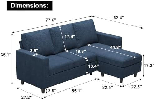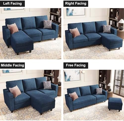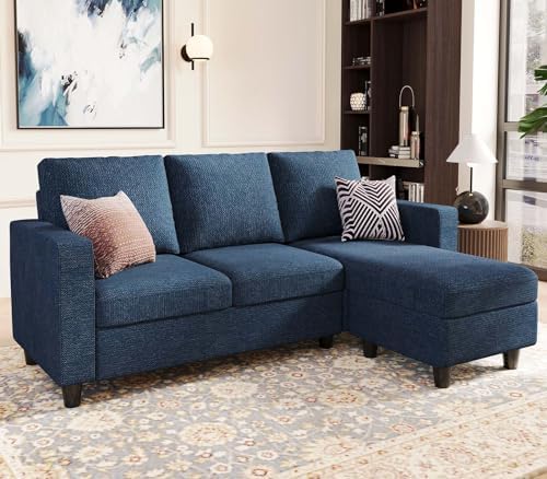 Belffin Convertible Sectional Sofa, L Shaped Modern Couch, Small Couch with Reversible Chaise for Living Room and Small Space, Navy Blue